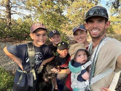 As a Colorado native, I take full advantage of the outdoor lifestyle here, rock climbing, hiking, camping with our boys, and climbing 14ers when I get the chance. I also play soccer a lot, and because we live out in the country, we are always busy taking care of our land and animals.